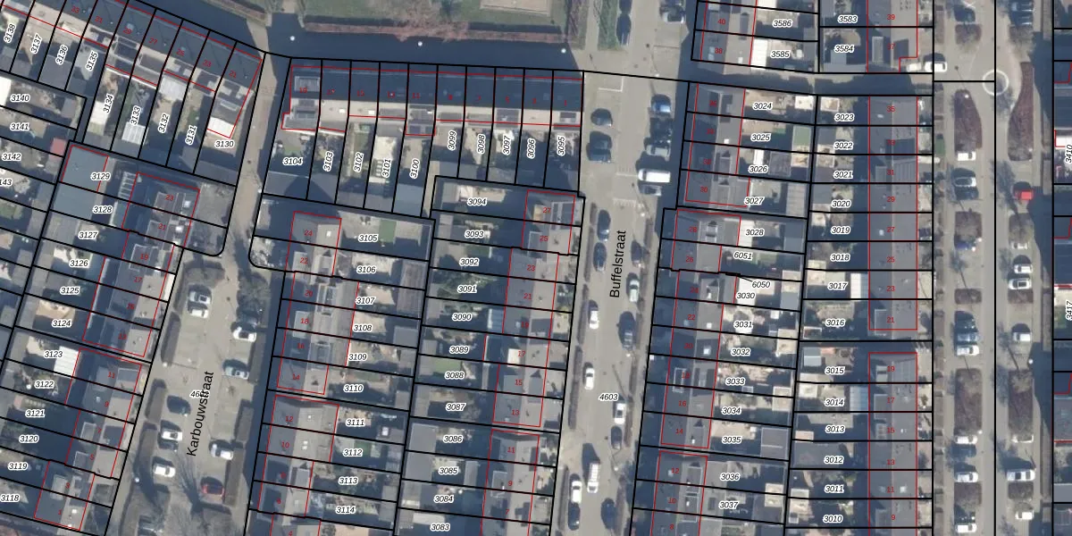 Het perceel waarop Buffelstraat 23 staat heeft een oppervlakte van 149 m². Dit is een middelgroot perceel. De perceeloppervlakte wordt geregistreerd door het Kadaster. Gedetailleerde informatie over de maten van dit perceel kunt u vinden in het rapport Kadastrale kaart met maatvoering van Buffelstraat 23.