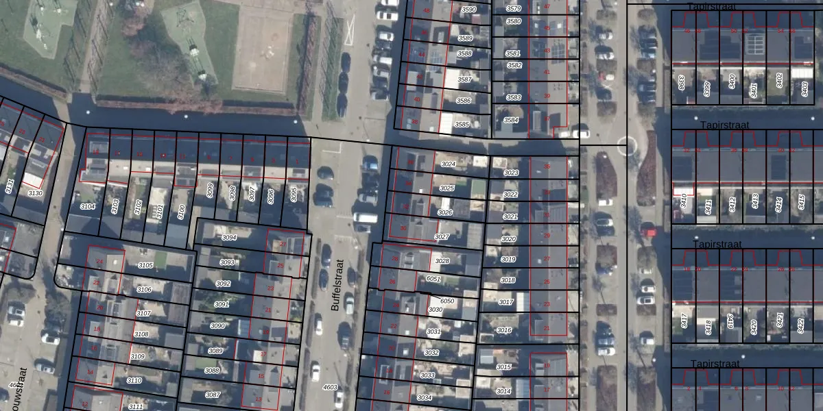 Het perceel waarop Buffelstraat 32 staat heeft een oppervlakte van 132 m². Dit is een middelgroot perceel. De perceeloppervlakte wordt geregistreerd door het Kadaster. Gedetailleerde informatie over de maten van dit perceel kunt u vinden in het rapport Kadastrale kaart met maatvoering van Buffelstraat 32.