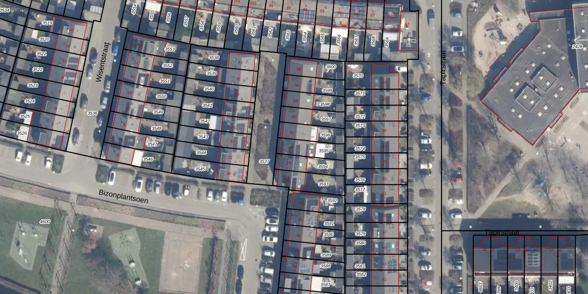 Gebruik de zoekbalk of klik op een perceel voor informatie over de adressen binnen dit perceel.