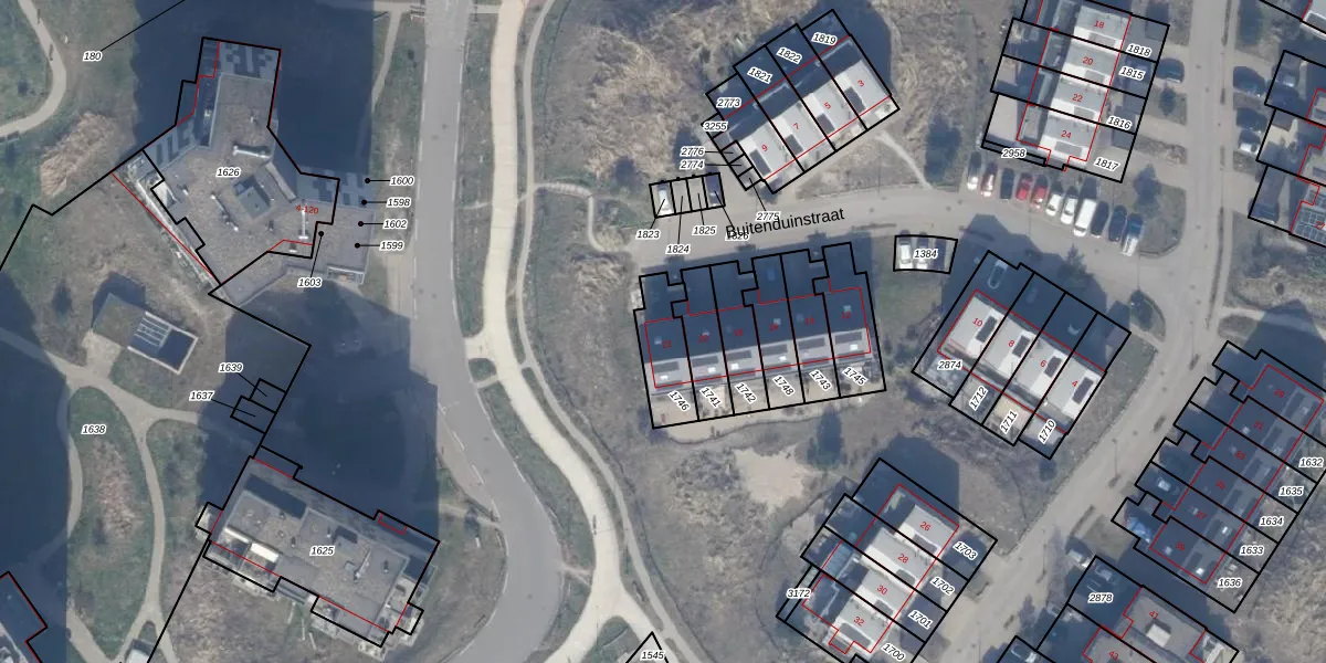 Gebruik de zoekbalk of klik op een perceel voor informatie over de adressen binnen dit perceel.