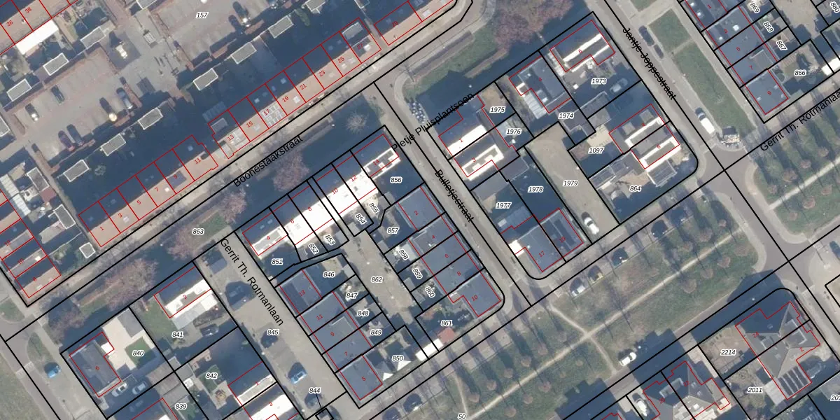 Gebruik de zoekbalk of klik op een perceel voor informatie over de adressen binnen dit perceel.