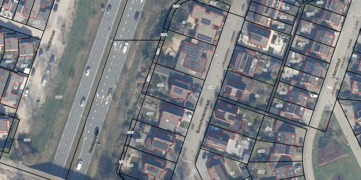 Het perceel waarop Bunschotenstraat 6 staat heeft een oppervlakte van 516 m². Dit is een groot perceel. De perceeloppervlakte wordt geregistreerd door het Kadaster. Gedetailleerde informatie over de maten van dit perceel kunt u vinden in het rapport Kadastrale kaart met maatvoering van Bunschotenstraat 6.