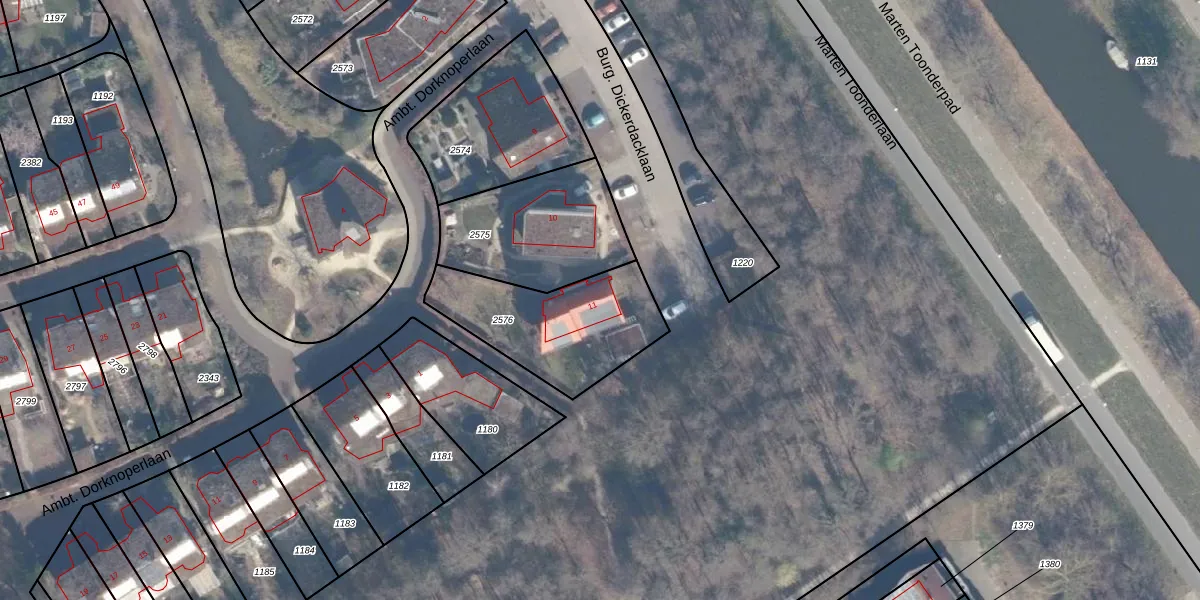 Het perceel waarop Burg. Dickerdacklaan 11 staat heeft een oppervlakte van 519 m². Dit is een groot perceel. De perceeloppervlakte wordt geregistreerd door het Kadaster. Gedetailleerde informatie over de maten van dit perceel kunt u vinden in het rapport Kadastrale kaart met maatvoering van Burg. Dickerdacklaan 11.
