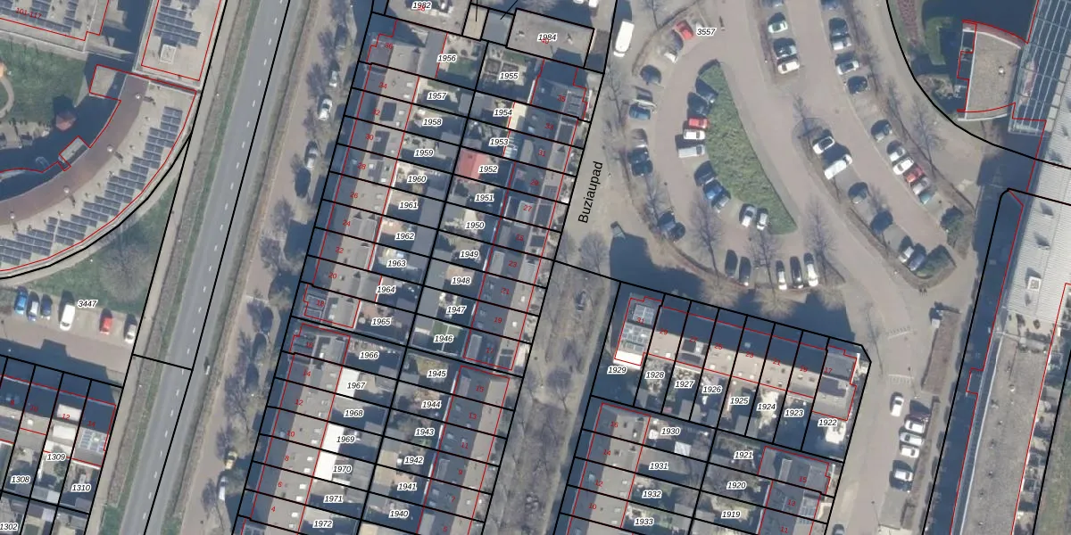 Het perceel waarop Buziaupad 23 staat heeft een oppervlakte van 121 m². Dit is een middelgroot perceel. De perceeloppervlakte wordt geregistreerd door het Kadaster. Gedetailleerde informatie over de maten van dit perceel kunt u vinden in het rapport Kadastrale kaart met maatvoering van Buziaupad 23.