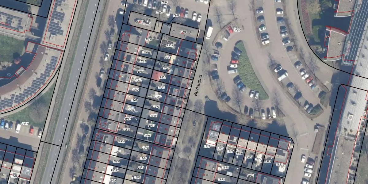 Het perceel waarop Buziaupad 27 staat heeft een oppervlakte van 121 m². Dit is een middelgroot perceel. De perceeloppervlakte wordt geregistreerd door het Kadaster. Gedetailleerde informatie over de maten van dit perceel kunt u vinden in het rapport Kadastrale kaart met maatvoering van Buziaupad 27.