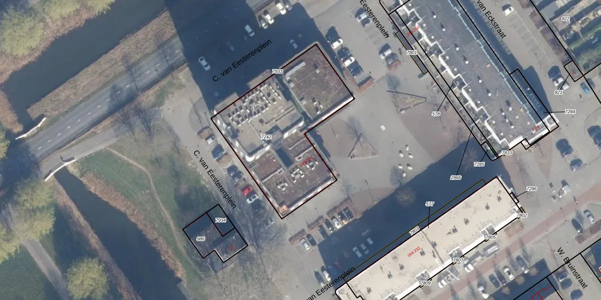 Het perceel waarop C. van Eesterenplein 199 staat heeft een oppervlakte van 1372 m². Dit is een zeer groot perceel. De perceeloppervlakte wordt geregistreerd door het Kadaster. Gedetailleerde informatie over de maten van dit perceel kunt u vinden in het rapport Kadastrale kaart met maatvoering van C. van Eesterenplein 199.