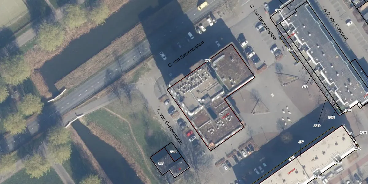 C. van Eesterenplein 203 is gelegen op kadastraal perceel AMR04P7242. Deze kadastrale aanduiding is uniek en wordt gebruikt door het Kadaster om eigendomsrechten en andere zakelijke rechten vast te leggen. Het perceel maakt onderdeel uit van de kadastrale gemeente Almere.