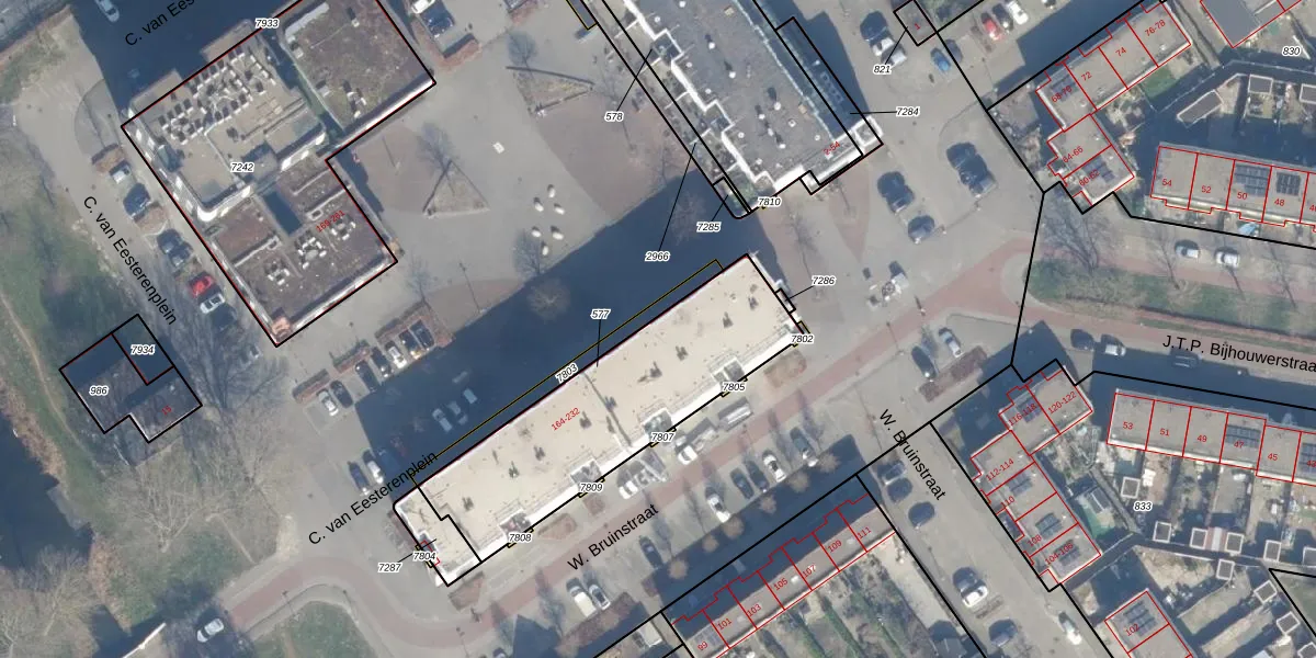 Het perceel waarop C. van Eesterenplein 204 staat heeft een oppervlakte van 914 m². Dit is een groot perceel. De perceeloppervlakte wordt geregistreerd door het Kadaster. Gedetailleerde informatie over de maten van dit perceel kunt u vinden in het rapport Kadastrale kaart met maatvoering van C. van Eesterenplein 204.