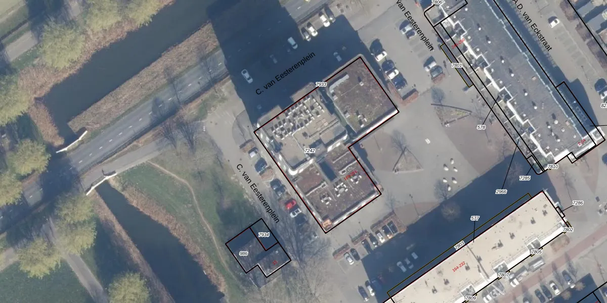 C. van Eesterenplein 231 is gelegen op kadastraal perceel AMR04P7242. Deze kadastrale aanduiding is uniek en wordt gebruikt door het Kadaster om eigendomsrechten en andere zakelijke rechten vast te leggen. Het perceel maakt onderdeel uit van de kadastrale gemeente Almere.