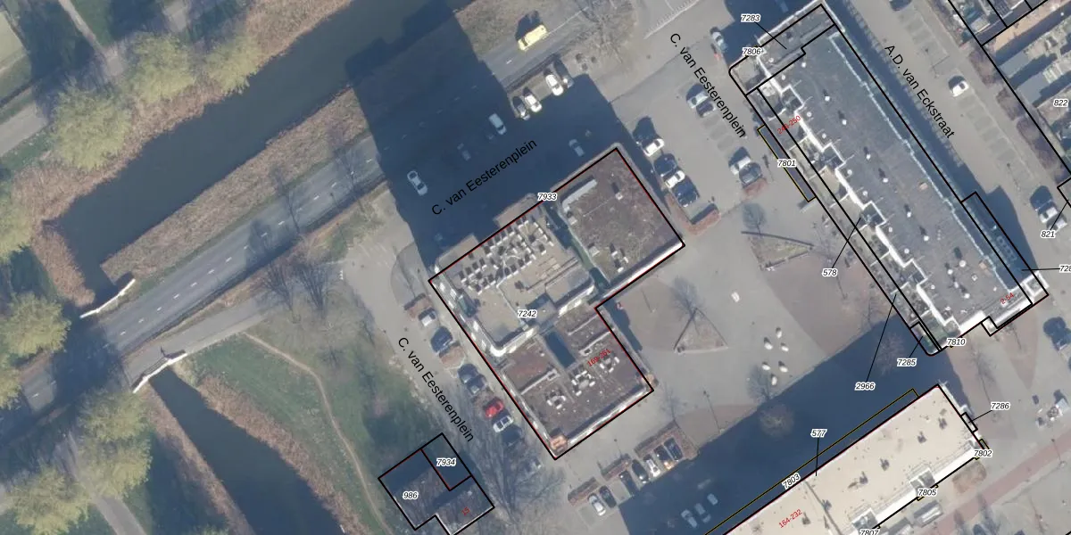 C. van Eesterenplein 251 is gelegen op kadastraal perceel AMR04P7242. Deze kadastrale aanduiding is uniek en wordt gebruikt door het Kadaster om eigendomsrechten en andere zakelijke rechten vast te leggen. Het perceel maakt onderdeel uit van de kadastrale gemeente Almere.