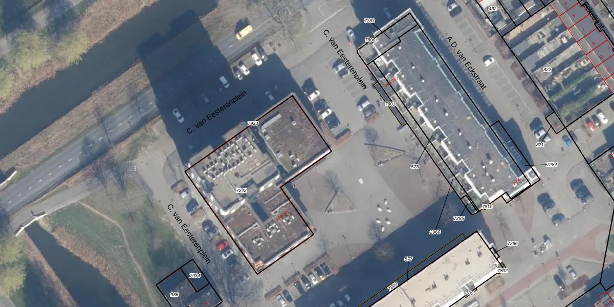 C. van Eesterenplein 257 is gelegen op kadastraal perceel AMR04P7242. Deze kadastrale aanduiding is uniek en wordt gebruikt door het Kadaster om eigendomsrechten en andere zakelijke rechten vast te leggen. Het perceel maakt onderdeel uit van de kadastrale gemeente Almere.