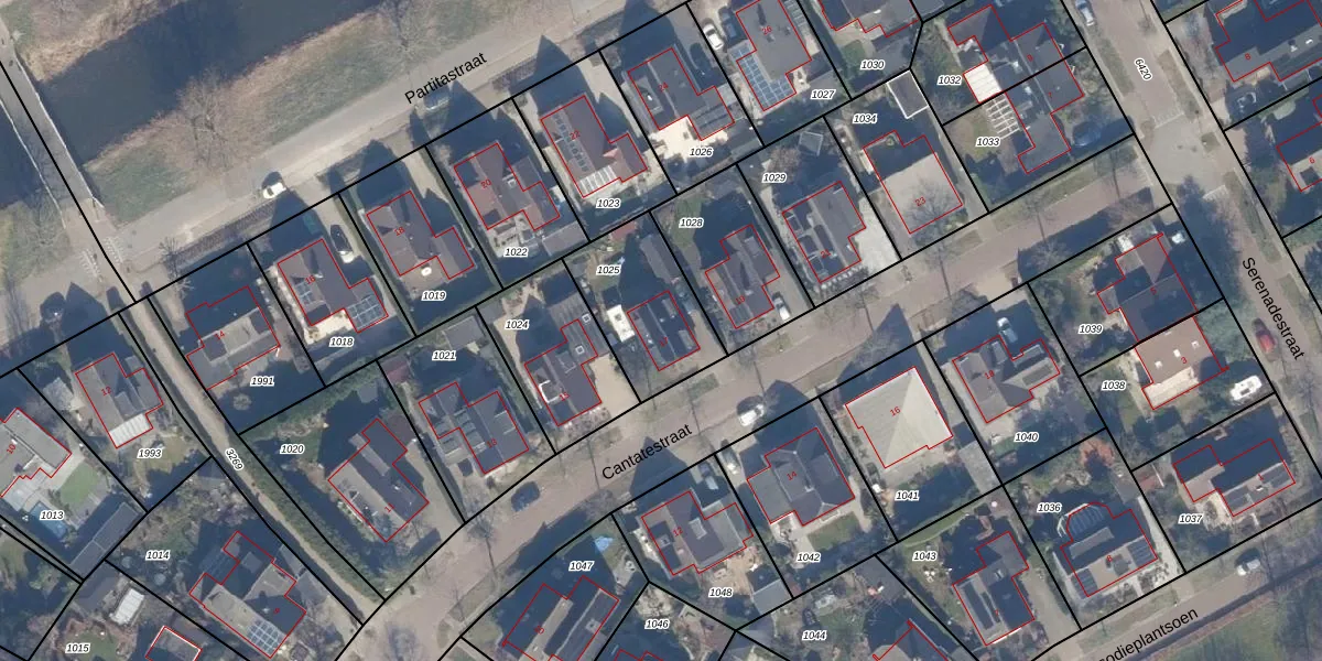 Het perceel waarop Cantatestraat 17 staat heeft een oppervlakte van 376 m². Dit is een groot perceel. De perceeloppervlakte wordt geregistreerd door het Kadaster. Gedetailleerde informatie over de maten van dit perceel kunt u vinden in het rapport Kadastrale kaart met maatvoering van Cantatestraat 17.