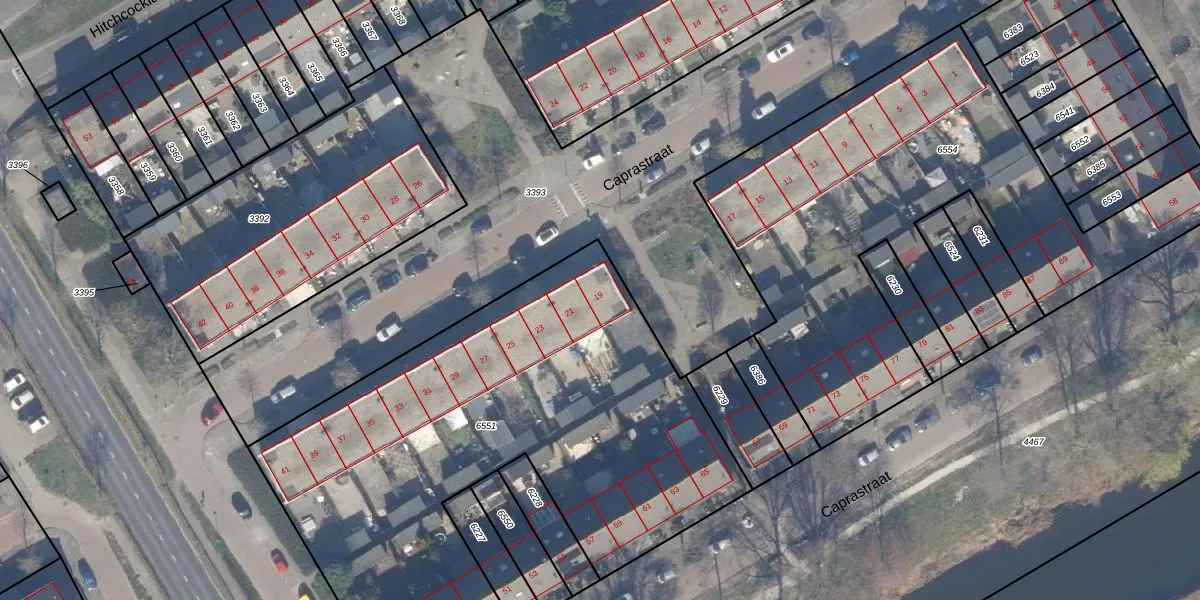 Het perceel waarop Caprastraat 19 staat heeft een oppervlakte van 2957 m². Dit is een zeer groot perceel. De perceeloppervlakte wordt geregistreerd door het Kadaster. Gedetailleerde informatie over de maten van dit perceel kunt u vinden in het rapport Kadastrale kaart met maatvoering van Caprastraat 19.