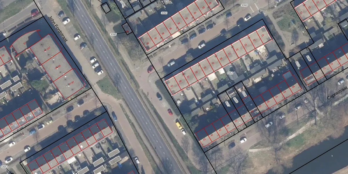 Het perceel waarop Caprastraat 41 staat heeft een oppervlakte van 2957 m². Dit is een zeer groot perceel. De perceeloppervlakte wordt geregistreerd door het Kadaster. Gedetailleerde informatie over de maten van dit perceel kunt u vinden in het rapport Kadastrale kaart met maatvoering van Caprastraat 41.