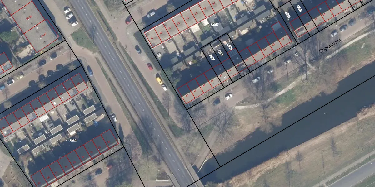 Het perceel waarop Caprastraat 43 staat heeft een oppervlakte van 2957 m². Dit is een zeer groot perceel. De perceeloppervlakte wordt geregistreerd door het Kadaster. Gedetailleerde informatie over de maten van dit perceel kunt u vinden in het rapport Kadastrale kaart met maatvoering van Caprastraat 43.