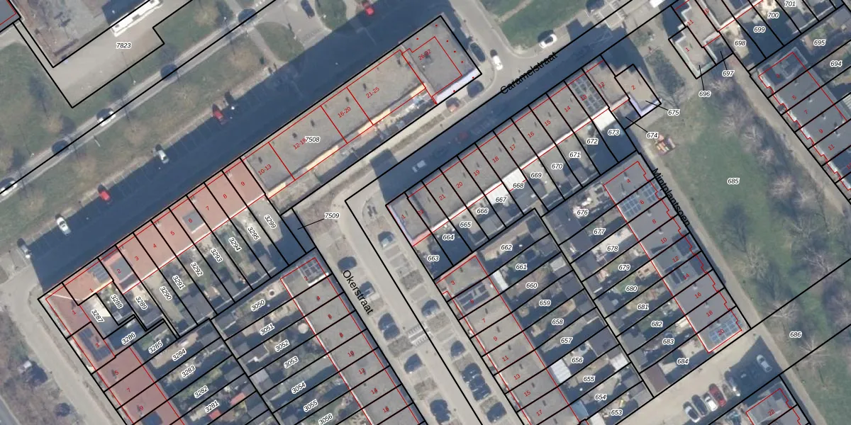 Het perceel waarop Caramelstraat 22 staat heeft een oppervlakte van 108 m². Dit is een middelgroot perceel. De perceeloppervlakte wordt geregistreerd door het Kadaster. Gedetailleerde informatie over de maten van dit perceel kunt u vinden in het rapport Kadastrale kaart met maatvoering van Caramelstraat 22.