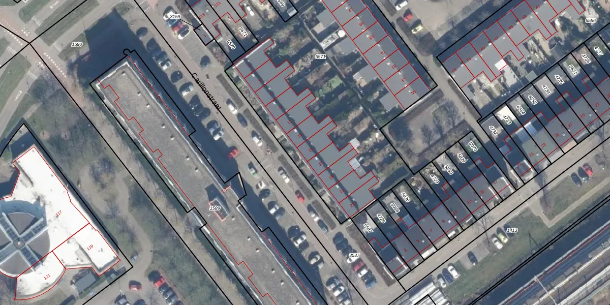 Het perceel waarop Carillonstraat 15 staat heeft een oppervlakte van 3692 m². Dit is een zeer groot perceel. De perceeloppervlakte wordt geregistreerd door het Kadaster. Gedetailleerde informatie over de maten van dit perceel kunt u vinden in het rapport Kadastrale kaart met maatvoering van Carillonstraat 15.