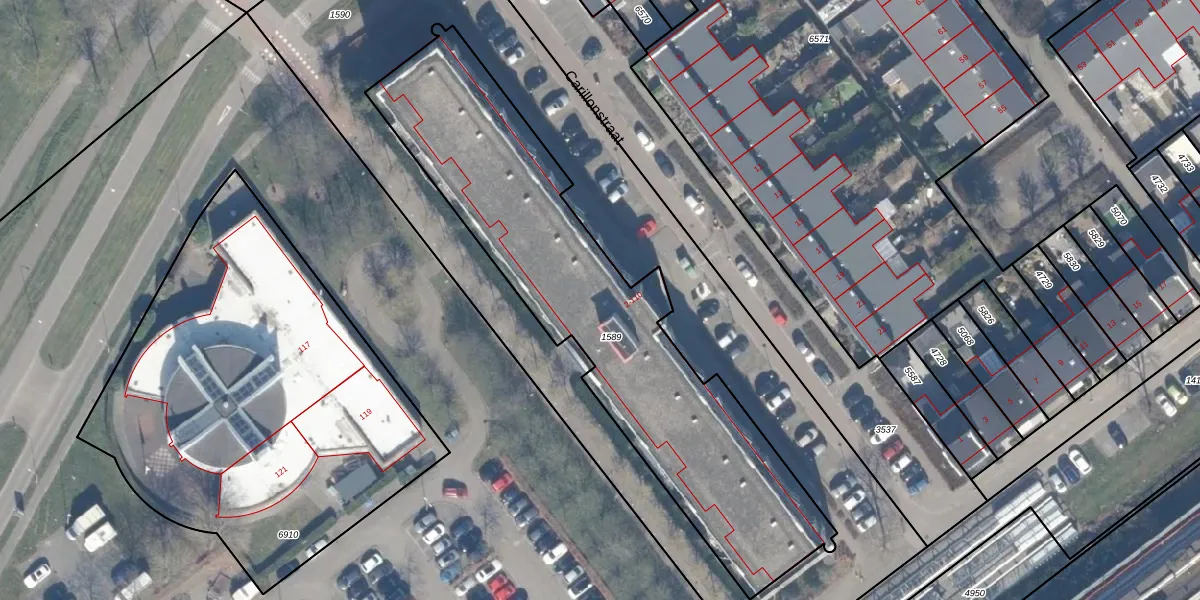 Het perceel waarop Carillonstraat 26 staat heeft een oppervlakte van 1860 m². Dit is een zeer groot perceel. De perceeloppervlakte wordt geregistreerd door het Kadaster. Gedetailleerde informatie over de maten van dit perceel kunt u vinden in het rapport Kadastrale kaart met maatvoering van Carillonstraat 26.