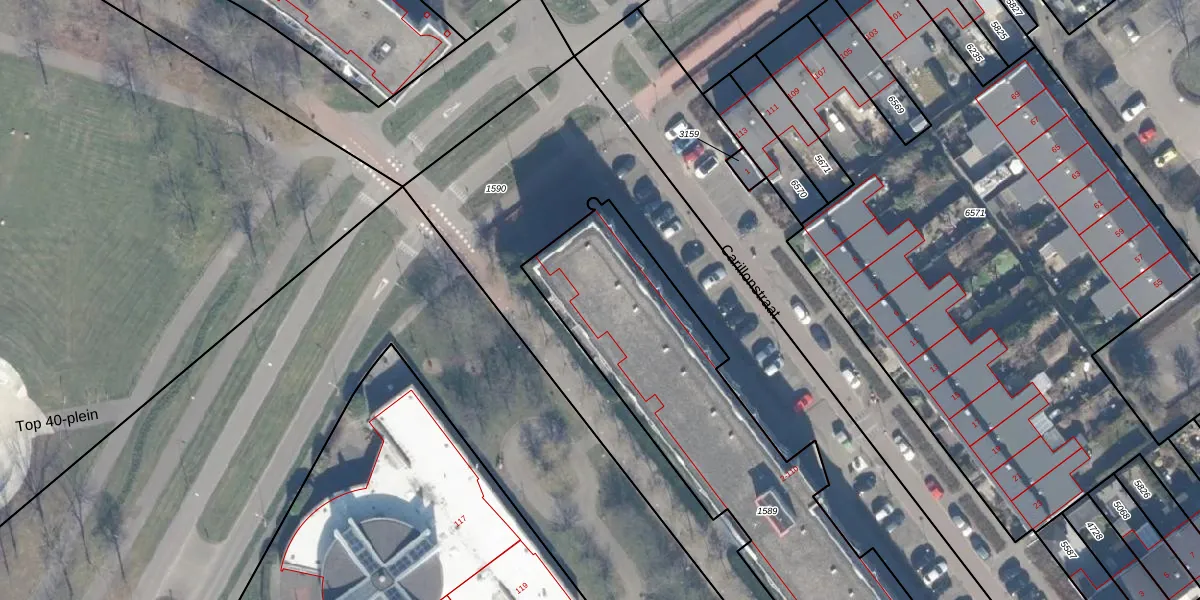 Het perceel waarop Carillonstraat 44 staat heeft een oppervlakte van 1860 m². Dit is een zeer groot perceel. De perceeloppervlakte wordt geregistreerd door het Kadaster. Gedetailleerde informatie over de maten van dit perceel kunt u vinden in het rapport Kadastrale kaart met maatvoering van Carillonstraat 44.
