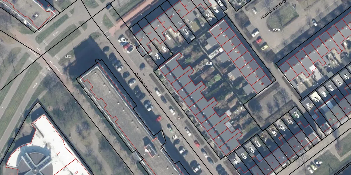 Het perceel waarop Carillonstraat 7 staat heeft een oppervlakte van 3692 m². Dit is een zeer groot perceel. De perceeloppervlakte wordt geregistreerd door het Kadaster. Gedetailleerde informatie over de maten van dit perceel kunt u vinden in het rapport Kadastrale kaart met maatvoering van Carillonstraat 7.