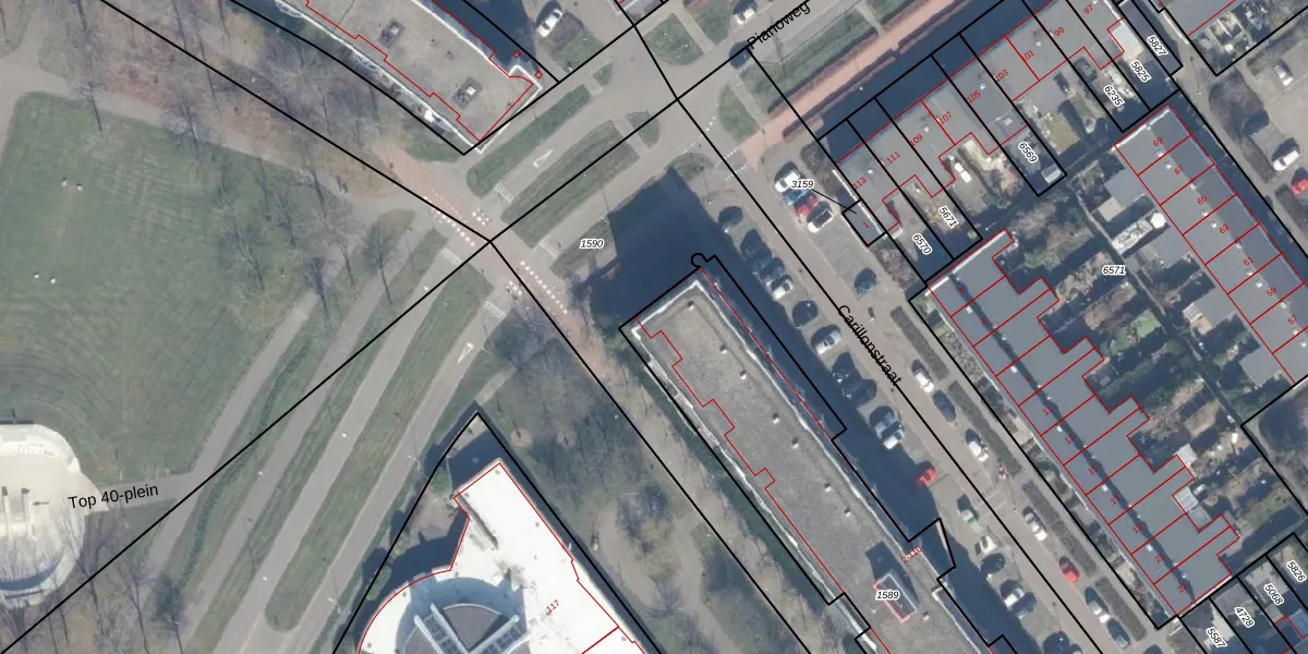 Het perceel waarop Carillonstraat 72 staat heeft een oppervlakte van 1860 m². Dit is een zeer groot perceel. De perceeloppervlakte wordt geregistreerd door het Kadaster. Gedetailleerde informatie over de maten van dit perceel kunt u vinden in het rapport Kadastrale kaart met maatvoering van Carillonstraat 72.