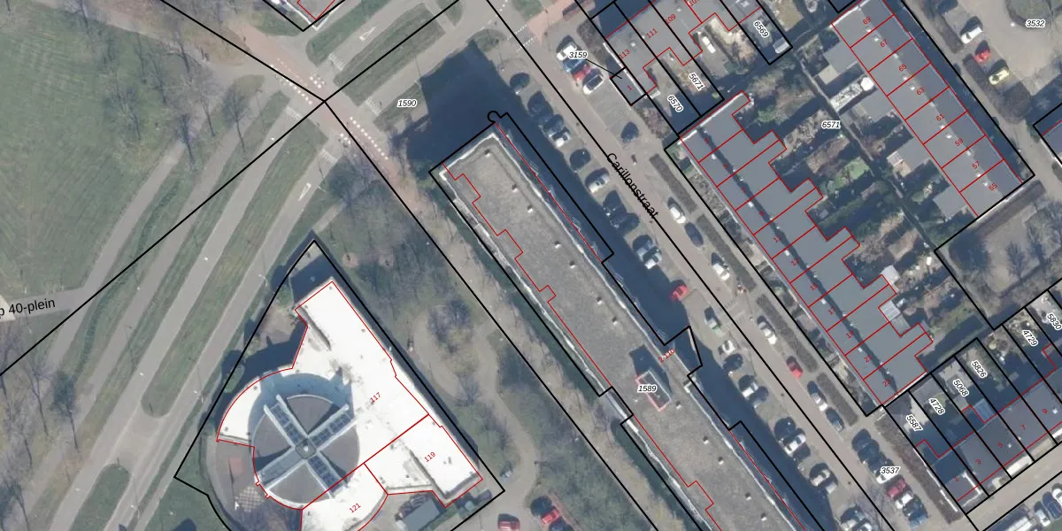 Het perceel waarop Carillonstraat 78 staat heeft een oppervlakte van 1860 m². Dit is een zeer groot perceel. De perceeloppervlakte wordt geregistreerd door het Kadaster. Gedetailleerde informatie over de maten van dit perceel kunt u vinden in het rapport Kadastrale kaart met maatvoering van Carillonstraat 78.