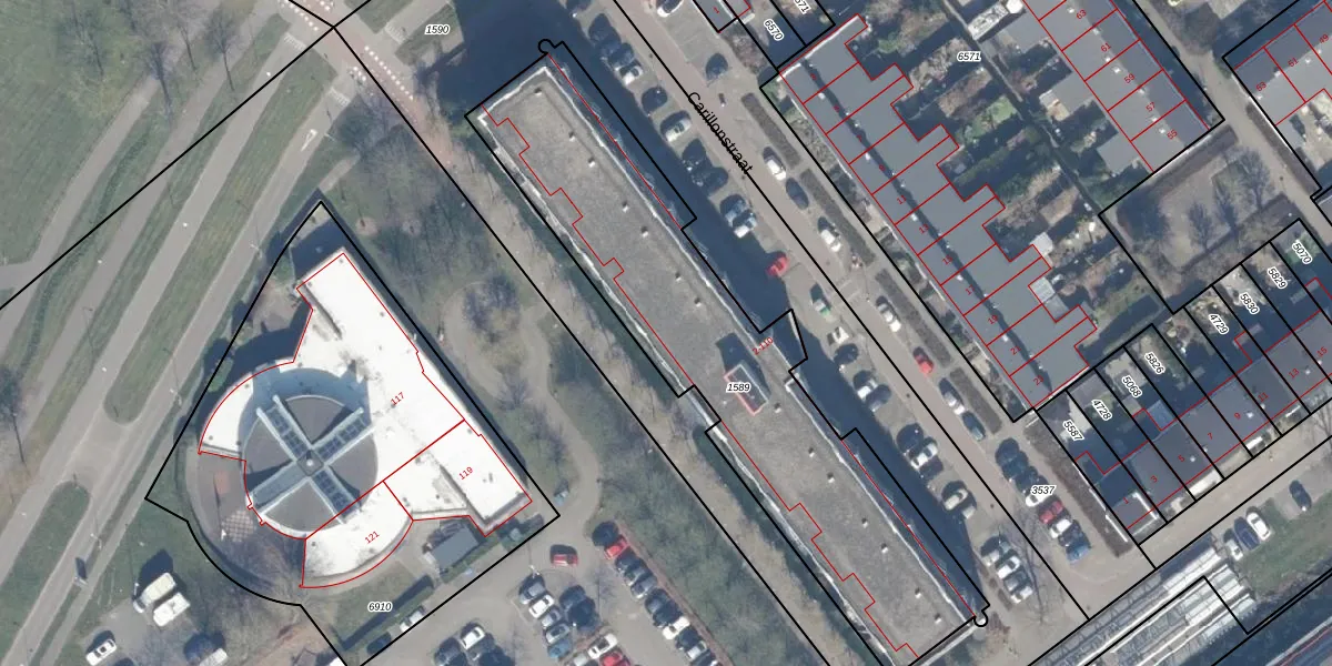 Het perceel waarop Carillonstraat 84 staat heeft een oppervlakte van 1860 m². Dit is een zeer groot perceel. De perceeloppervlakte wordt geregistreerd door het Kadaster. Gedetailleerde informatie over de maten van dit perceel kunt u vinden in het rapport Kadastrale kaart met maatvoering van Carillonstraat 84.