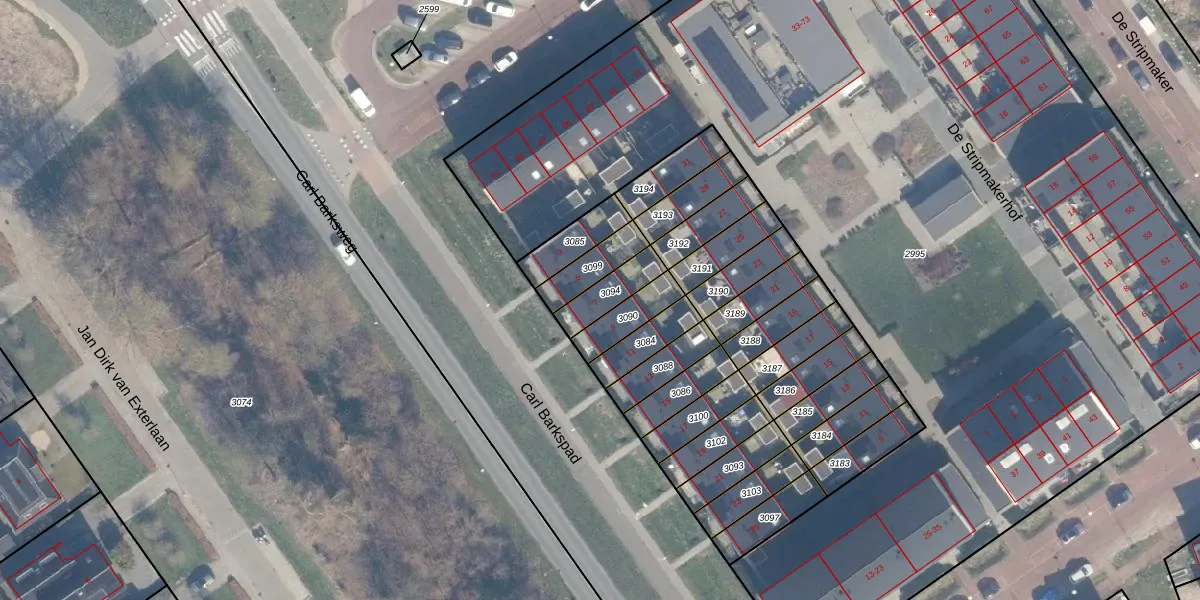 Het perceel waarop Carl Barkspad 7 staat heeft een oppervlakte van 102 m². Dit is een middelgroot perceel. De perceeloppervlakte wordt geregistreerd door het Kadaster. Gedetailleerde informatie over de maten van dit perceel kunt u vinden in het rapport Kadastrale kaart met maatvoering van Carl Barkspad 7.