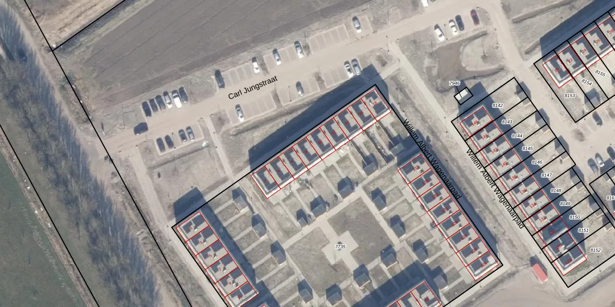 Het perceel waarop Carl Jungstraat 8 staat heeft een oppervlakte van 5830 m². Dit is een zeer groot perceel. De perceeloppervlakte wordt geregistreerd door het Kadaster. Gedetailleerde informatie over de maten van dit perceel kunt u vinden in het rapport Kadastrale kaart met maatvoering van Carl Jungstraat 8.