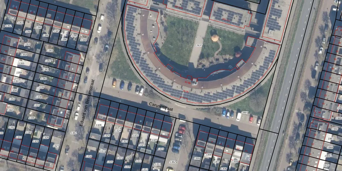 Het perceel waarop Carusostraat 17 staat heeft een oppervlakte van 6896 m². Dit is een zeer groot perceel. De perceeloppervlakte wordt geregistreerd door het Kadaster. Gedetailleerde informatie over de maten van dit perceel kunt u vinden in het rapport Kadastrale kaart met maatvoering van Carusostraat 17.