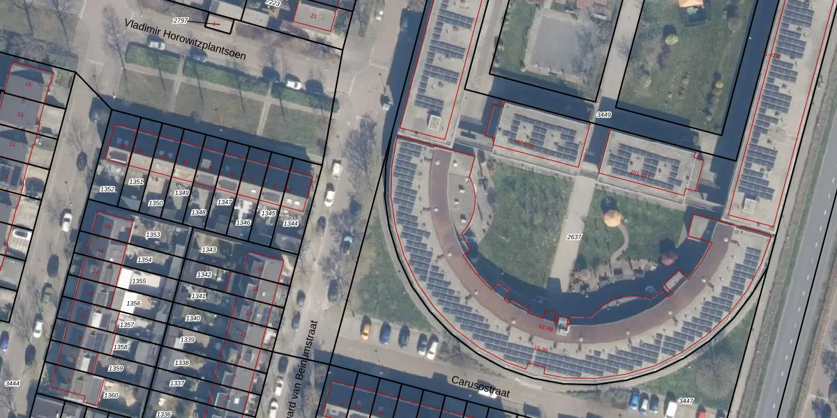 Het perceel waarop Carusostraat 29 staat heeft een oppervlakte van 6896 m². Dit is een zeer groot perceel. De perceeloppervlakte wordt geregistreerd door het Kadaster. Gedetailleerde informatie over de maten van dit perceel kunt u vinden in het rapport Kadastrale kaart met maatvoering van Carusostraat 29.