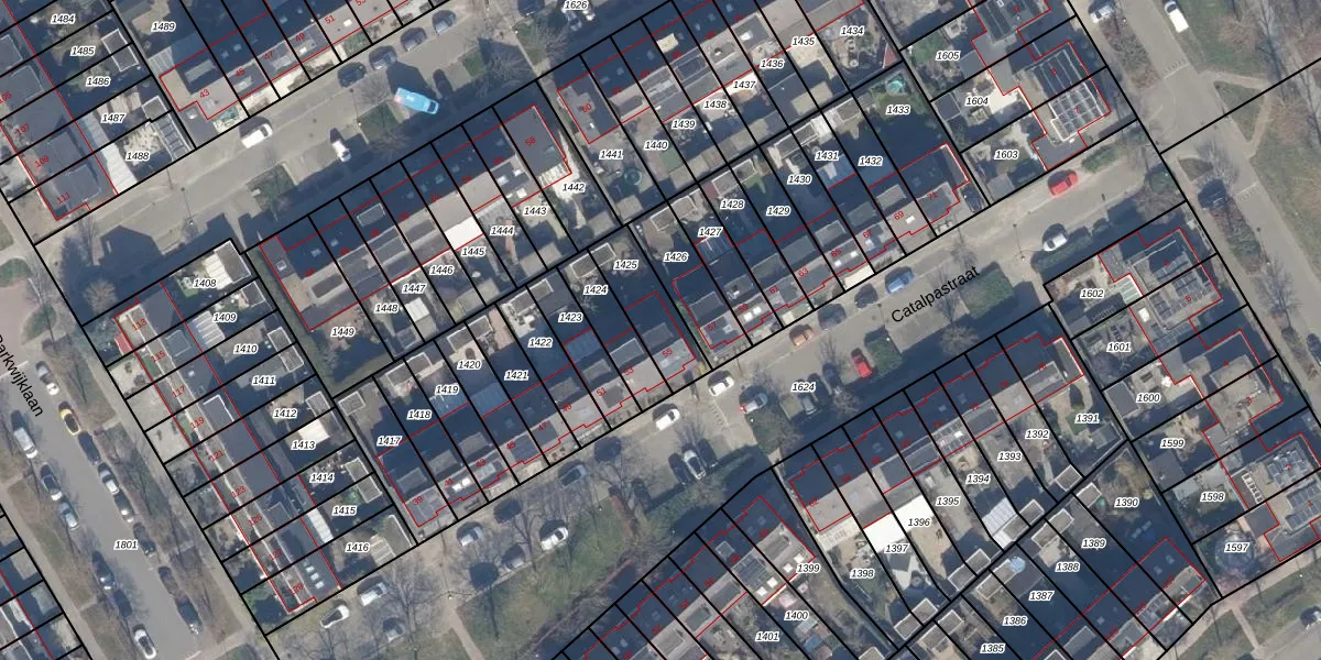 Het perceel waarop Catalpastraat 55 staat heeft een oppervlakte van 181 m². Dit is een middelgroot perceel. De perceeloppervlakte wordt geregistreerd door het Kadaster. Gedetailleerde informatie over de maten van dit perceel kunt u vinden in het rapport Kadastrale kaart met maatvoering van Catalpastraat 55.
