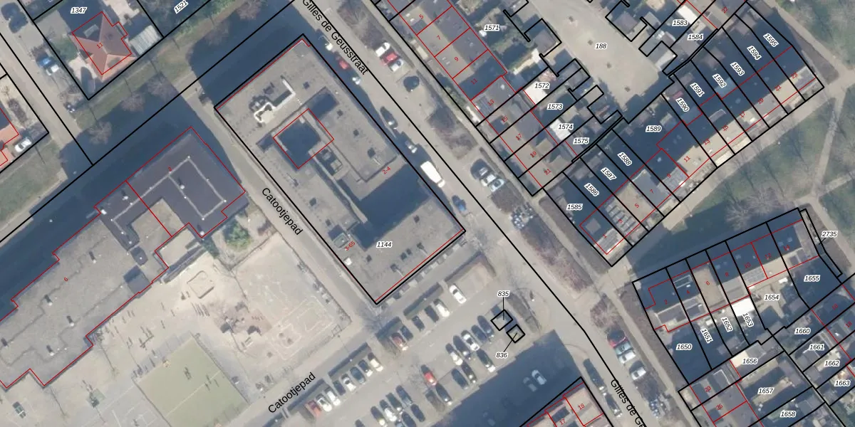 Het perceel waarop Catootjepad 13 staat heeft een oppervlakte van 1615 m². Dit is een zeer groot perceel. De perceeloppervlakte wordt geregistreerd door het Kadaster. Gedetailleerde informatie over de maten van dit perceel kunt u vinden in het rapport Kadastrale kaart met maatvoering van Catootjepad 13.