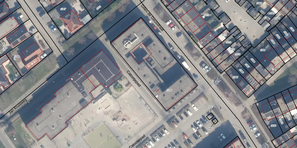Het perceel waarop Catootjepad 17 staat heeft een oppervlakte van 1615 m². Dit is een zeer groot perceel. De perceeloppervlakte wordt geregistreerd door het Kadaster. Gedetailleerde informatie over de maten van dit perceel kunt u vinden in het rapport Kadastrale kaart met maatvoering van Catootjepad 17.