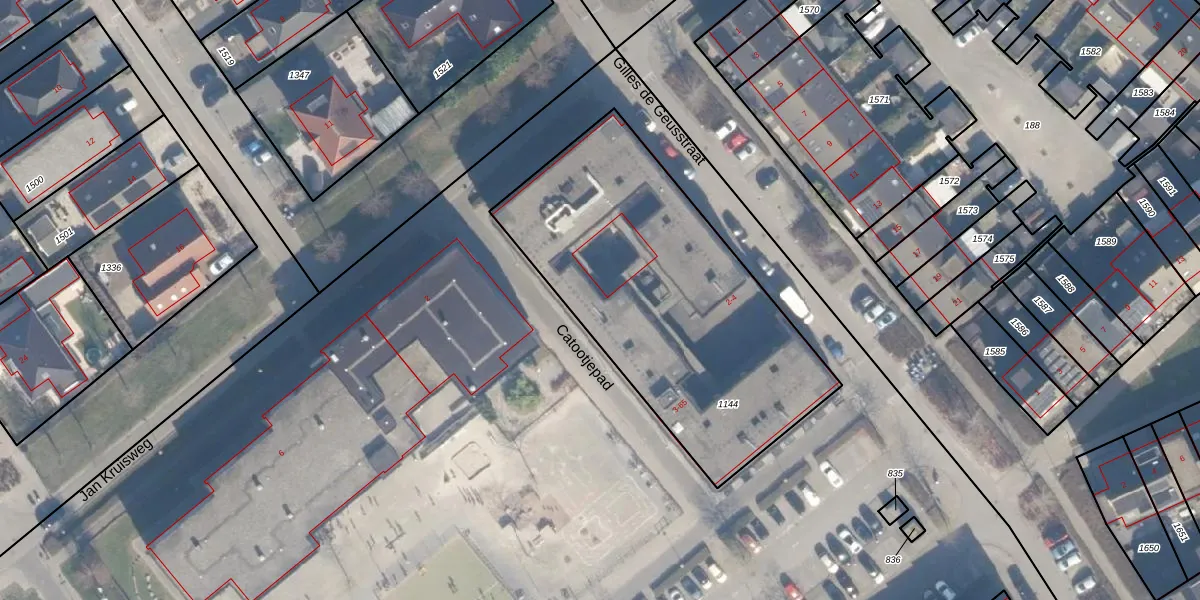 Het perceel waarop Catootjepad 19 staat heeft een oppervlakte van 1615 m². Dit is een zeer groot perceel. De perceeloppervlakte wordt geregistreerd door het Kadaster. Gedetailleerde informatie over de maten van dit perceel kunt u vinden in het rapport Kadastrale kaart met maatvoering van Catootjepad 19.