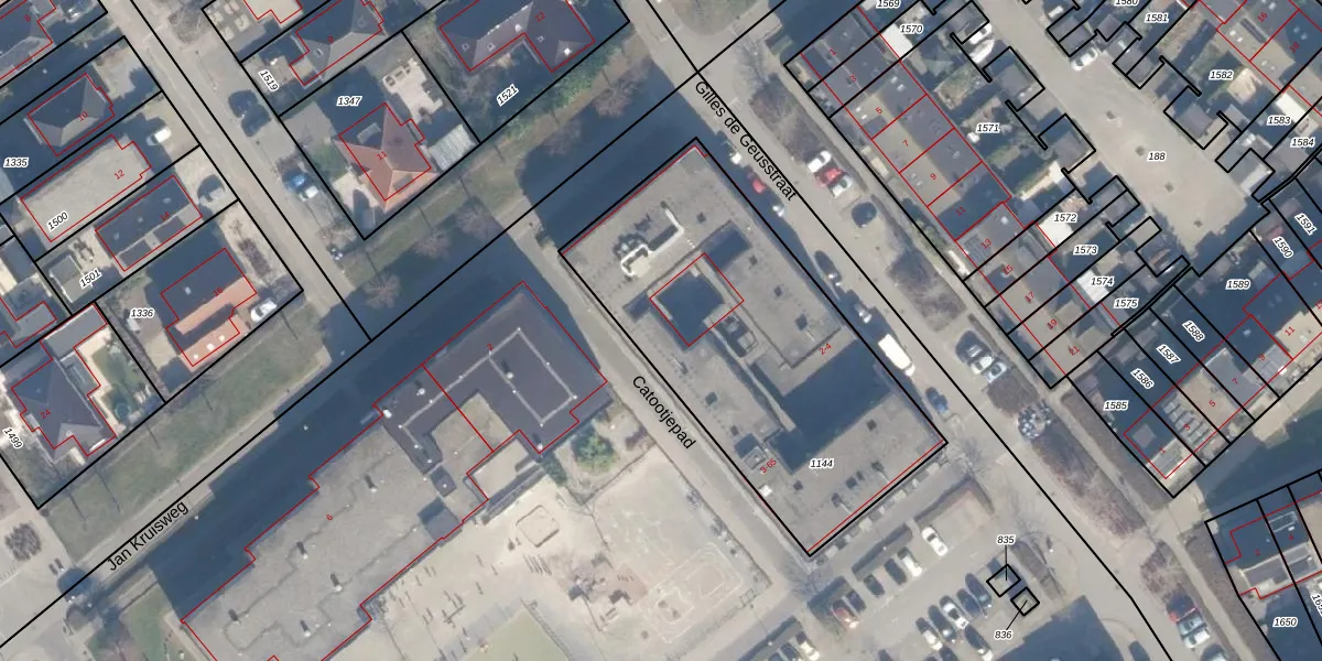 Het perceel waarop Catootjepad 5 staat heeft een oppervlakte van 1615 m². Dit is een zeer groot perceel. De perceeloppervlakte wordt geregistreerd door het Kadaster. Gedetailleerde informatie over de maten van dit perceel kunt u vinden in het rapport Kadastrale kaart met maatvoering van Catootjepad 5.