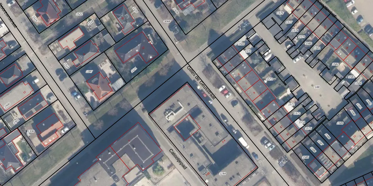 Het perceel waarop Catootjepad 57 staat heeft een oppervlakte van 1615 m². Dit is een zeer groot perceel. De perceeloppervlakte wordt geregistreerd door het Kadaster. Gedetailleerde informatie over de maten van dit perceel kunt u vinden in het rapport Kadastrale kaart met maatvoering van Catootjepad 57.