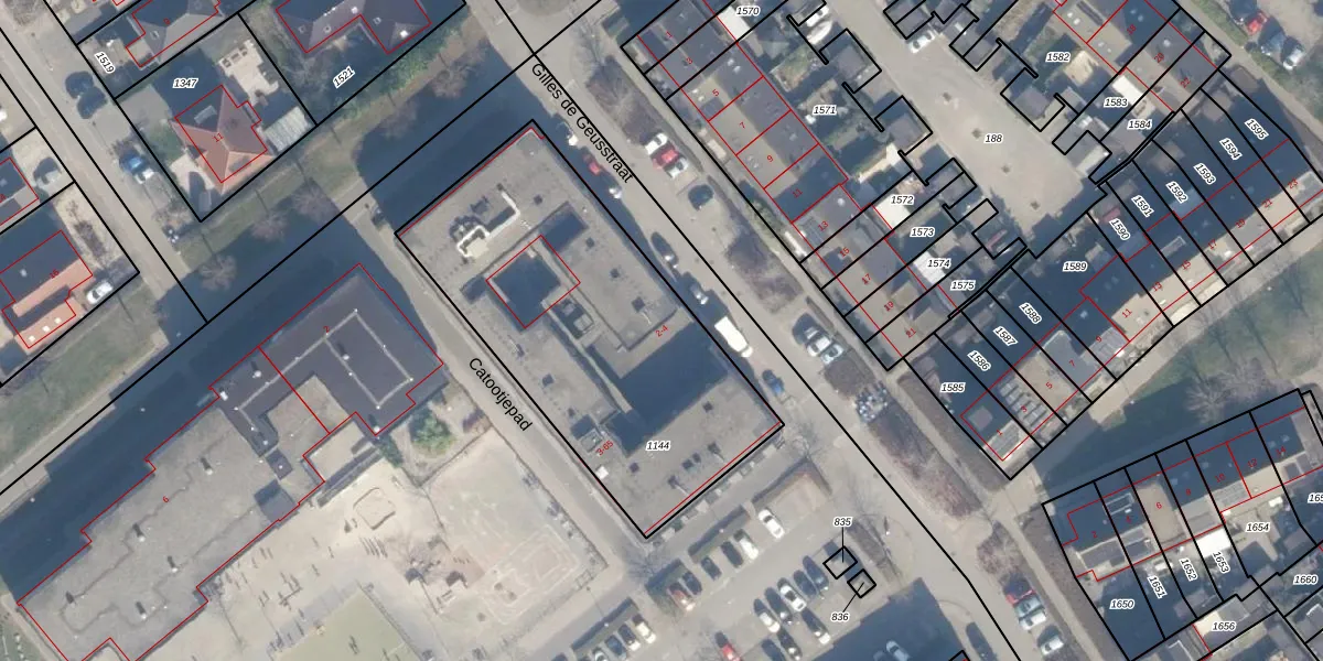 Het perceel waarop Catootjepad 63 staat heeft een oppervlakte van 1615 m². Dit is een zeer groot perceel. De perceeloppervlakte wordt geregistreerd door het Kadaster. Gedetailleerde informatie over de maten van dit perceel kunt u vinden in het rapport Kadastrale kaart met maatvoering van Catootjepad 63.