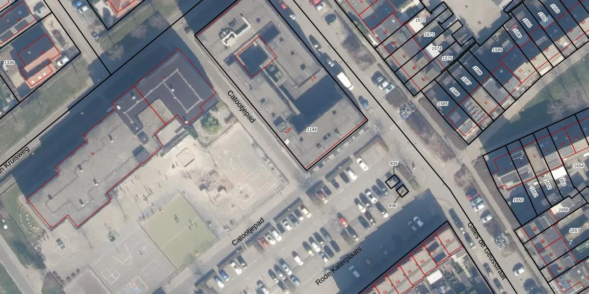 Het perceel waarop Catootjepad 7 staat heeft een oppervlakte van 1615 m². Dit is een zeer groot perceel. De perceeloppervlakte wordt geregistreerd door het Kadaster. Gedetailleerde informatie over de maten van dit perceel kunt u vinden in het rapport Kadastrale kaart met maatvoering van Catootjepad 7.