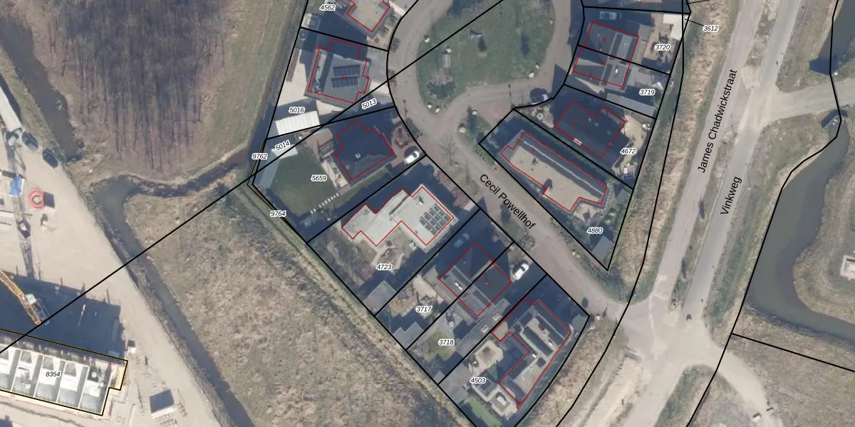 Het perceel waarop Cecil Powellhof 7 staat heeft een oppervlakte van 720 m². Dit is een groot perceel. De perceeloppervlakte wordt geregistreerd door het Kadaster. Gedetailleerde informatie over de maten van dit perceel kunt u vinden in het rapport Kadastrale kaart met maatvoering van Cecil Powellhof 7.