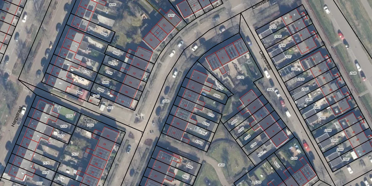 Het perceel waarop Cellostraat 13 staat heeft een oppervlakte van 968 m². Dit is een groot perceel. De perceeloppervlakte wordt geregistreerd door het Kadaster. Gedetailleerde informatie over de maten van dit perceel kunt u vinden in het rapport Kadastrale kaart met maatvoering van Cellostraat 13.
