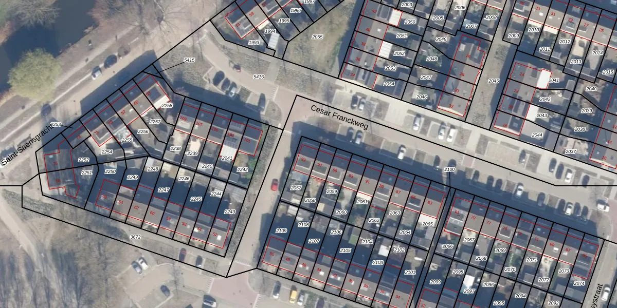 Het perceel waarop Cesar Franckweg 99 staat heeft een oppervlakte van 147 m². Dit is een middelgroot perceel. De perceeloppervlakte wordt geregistreerd door het Kadaster. Gedetailleerde informatie over de maten van dit perceel kunt u vinden in het rapport Kadastrale kaart met maatvoering van Cesar Franckweg 99.