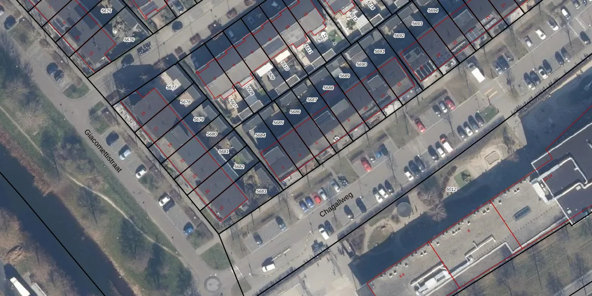 Het perceel waarop Chagallweg 3 staat heeft een oppervlakte van 185 m². Dit is een middelgroot perceel. De perceeloppervlakte wordt geregistreerd door het Kadaster. Gedetailleerde informatie over de maten van dit perceel kunt u vinden in het rapport Kadastrale kaart met maatvoering van Chagallweg 3.