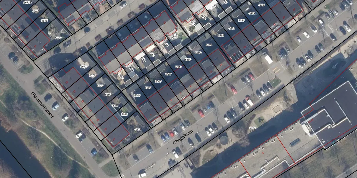 Chagallweg 7 is gelegen op kadastraal perceel AMR04P5687. Deze kadastrale aanduiding is uniek en wordt gebruikt door het Kadaster om eigendomsrechten en andere zakelijke rechten vast te leggen. Het perceel maakt onderdeel uit van de kadastrale gemeente Almere.