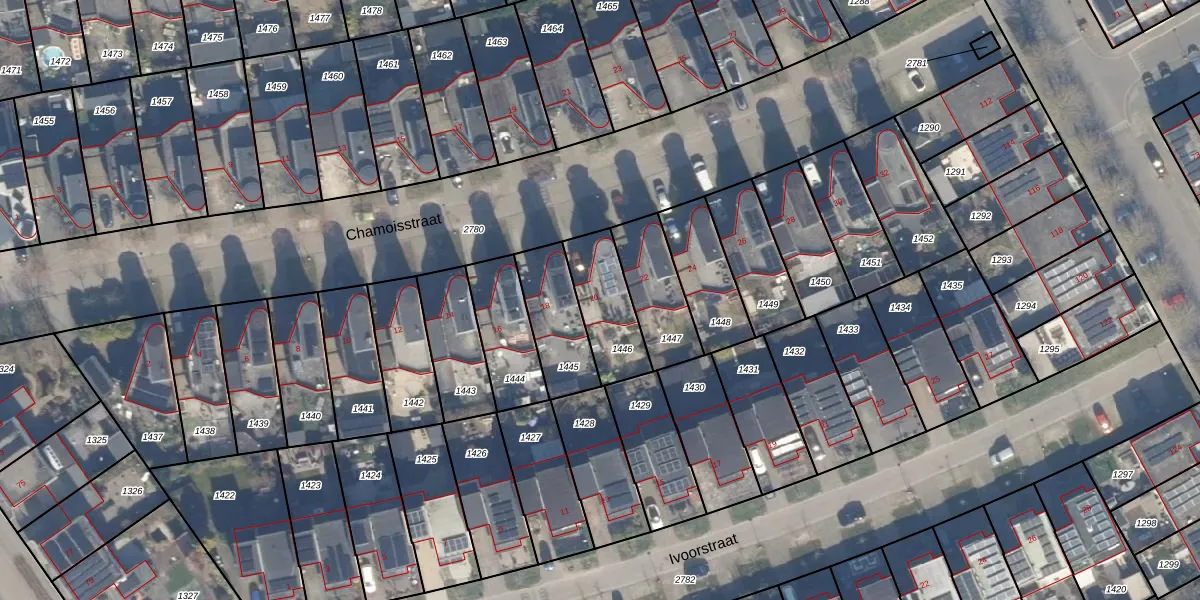 Het perceel waarop Chamoisstraat 20 staat heeft een oppervlakte van 216 m². Dit is een middelgroot perceel. De perceeloppervlakte wordt geregistreerd door het Kadaster. Gedetailleerde informatie over de maten van dit perceel kunt u vinden in het rapport Kadastrale kaart met maatvoering van Chamoisstraat 20.