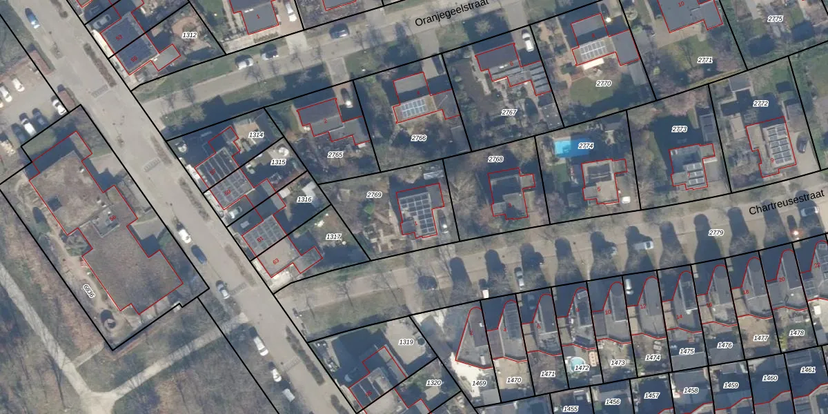 Gebruik de zoekbalk of klik op een perceel voor informatie over de adressen binnen dit perceel.