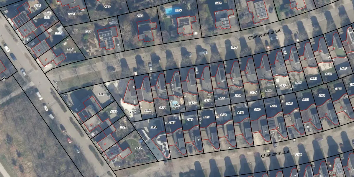 Het perceel waarop Chartreusestraat 8 staat heeft een oppervlakte van 214 m². Dit is een middelgroot perceel. De perceeloppervlakte wordt geregistreerd door het Kadaster. Gedetailleerde informatie over de maten van dit perceel kunt u vinden in het rapport Kadastrale kaart met maatvoering van Chartreusestraat 8.