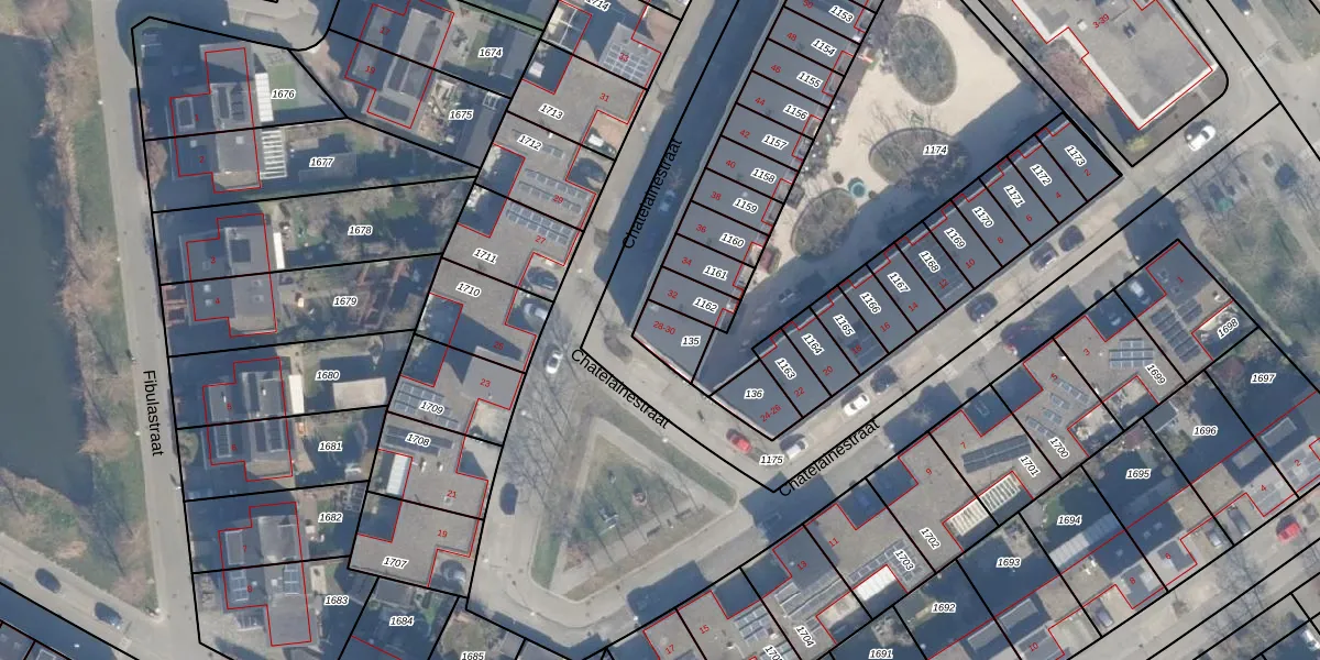 Het perceel waarop Chatelainestraat 30 staat heeft een oppervlakte van 85 m². Dit is een klein perceel. De perceeloppervlakte wordt geregistreerd door het Kadaster. Gedetailleerde informatie over de maten van dit perceel kunt u vinden in het rapport Kadastrale kaart met maatvoering van Chatelainestraat 30.
