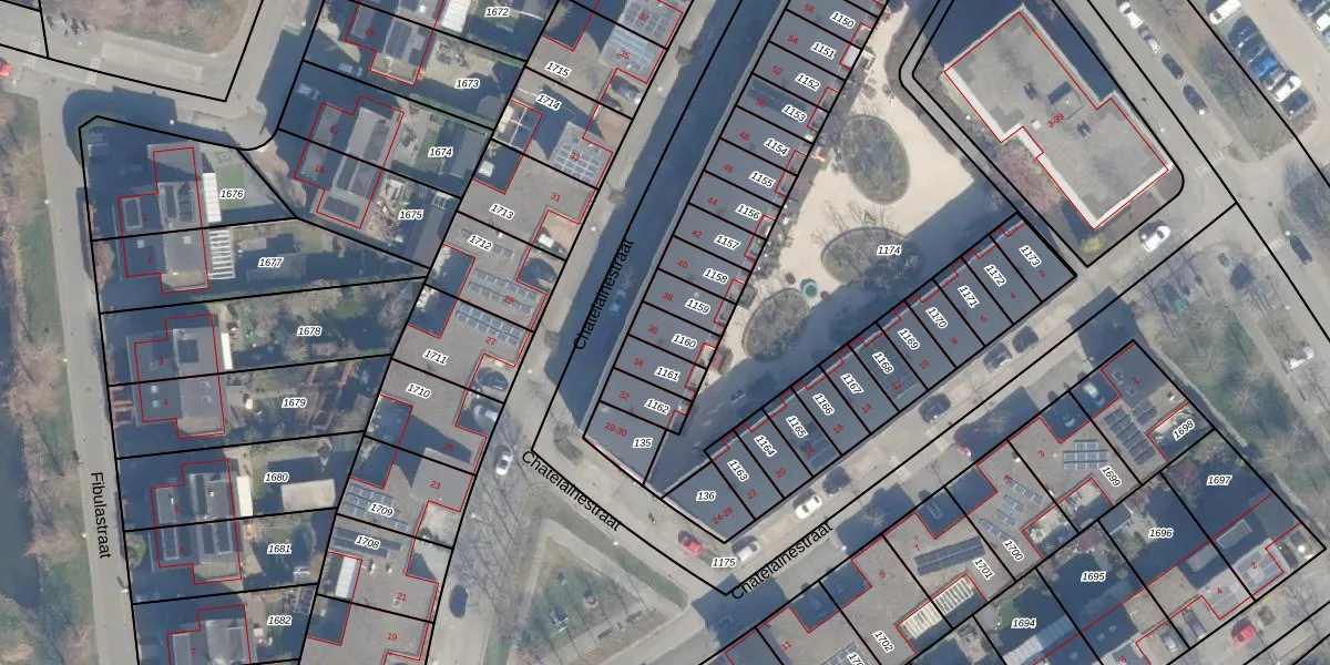 Het perceel waarop Chatelainestraat 36 staat heeft een oppervlakte van 70 m². Dit is een klein perceel. De perceeloppervlakte wordt geregistreerd door het Kadaster. Gedetailleerde informatie over de maten van dit perceel kunt u vinden in het rapport Kadastrale kaart met maatvoering van Chatelainestraat 36.