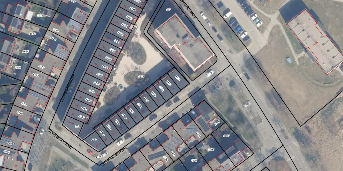 Het perceel waarop Chatelainestraat 4 staat heeft een oppervlakte van 70 m². Dit is een klein perceel. De perceeloppervlakte wordt geregistreerd door het Kadaster. Gedetailleerde informatie over de maten van dit perceel kunt u vinden in het rapport Kadastrale kaart met maatvoering van Chatelainestraat 4.